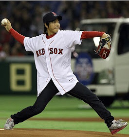 ここで”超満員”のシカゴ、USセルラー・フィールドで始球式をする豆つぶ大のデカの姿を。(やる気のない女房役は当時ホワイトソックスで活躍していた高津。)